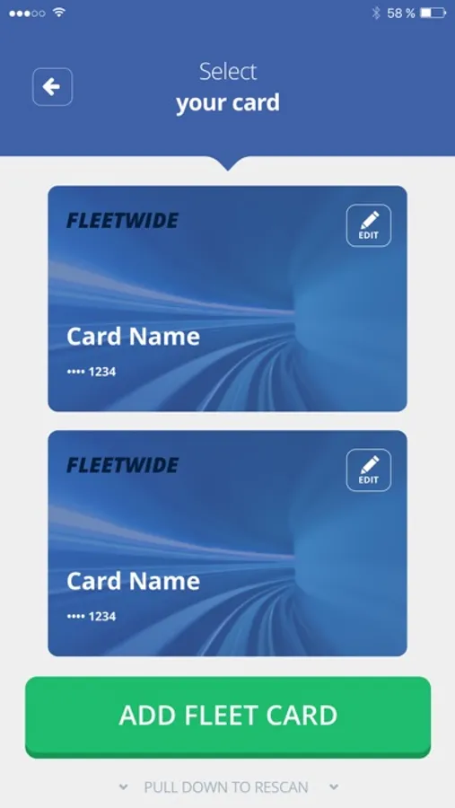 CardlessSwipe is a digital wallet for commercial fuel cards. With the CardlessSwipe app, drivers can access nearby pumps and complete transactions using digital copies of physical fuel cards at participating locations. CardlessSwipe ensures that drivers and site administrators have constant access to pumps with less logistical support - cards don’t get lost or stolen, and drivers aren’t locked out of systems because of worn cards.