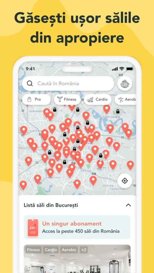 Take advantage of the monthly subscription benefits that offer you daily access to about 500 sport centers and gyms from over 100 cities in Romania.
