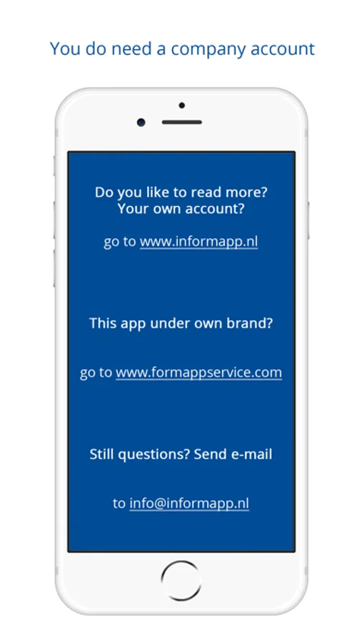 Inform works with credits and there are no additional costs for using the app. The credits are not purchased by the user but by the owner of the forms. Inform works via pay-per-use upfront. Any form-upload will cost 1 credit, unless more than 5 pictures are sent or special functionality in the form has been applied. When building the form, the amount of credits per upload will be determined with the owner and listed in your account. The credit balance and usage will also be kept in your account accompanied by submitted form-changes and/or new form-requests.