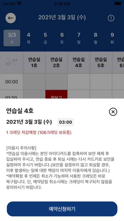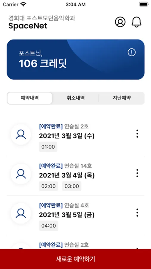 경희대학교 포스트모던학과 재학생을 위한 연습실 예약 시스템입니다.
