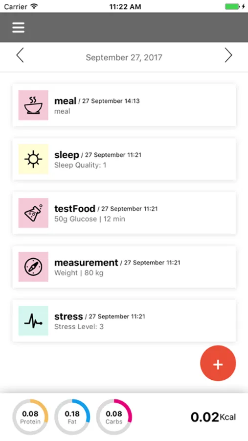 2. LOG YOUR ACTIVITIES: To find out what affects your blood sugar during your sugar recording week, you will log your food intake, sleep patterns, exercises, and other weekly activities using this App