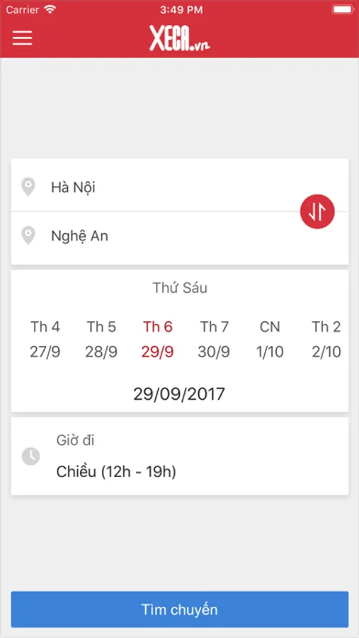 Ứng dụng mua vé xe, vé tàu của Xeca.vn