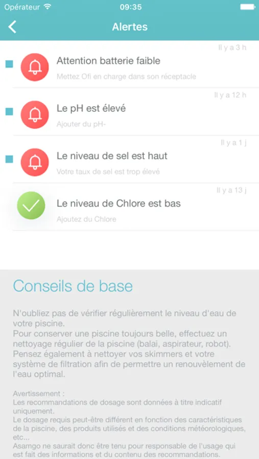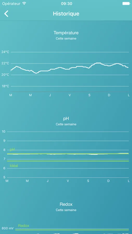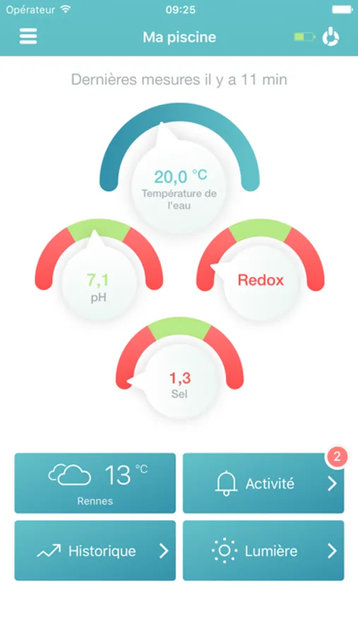 Les algorithmes d'Ofi analysent la température, le pH, le Redox (chlore, brome), le Sel.