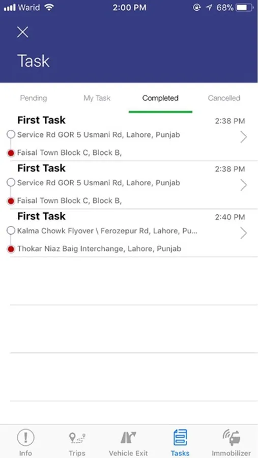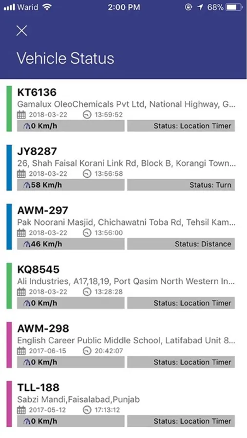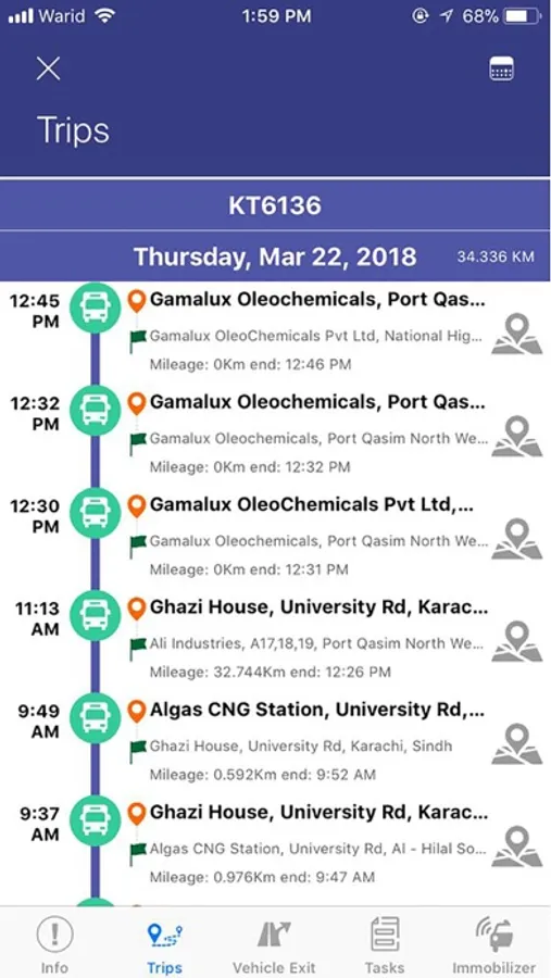 1. See list of all vehicles with details such as Status, Mileage, Address.