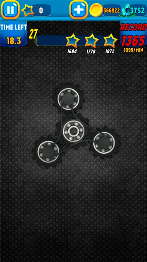 - «TIME» - Rotate the spinner toy for 20 seconds and get as more score as you can! Try to beat your best score or rpm (revolutions per minute)!