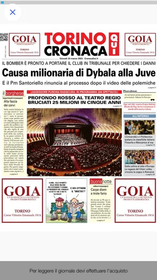 Puoi consultare gratuitamente la prima pagina o acquistare l'edizione completa. Sfogliando le pagine del giornale, ingrandendo i contenuti, ruotando il dispositivo, sarai libero di leggere in piena comodità e nella modalità preferita.