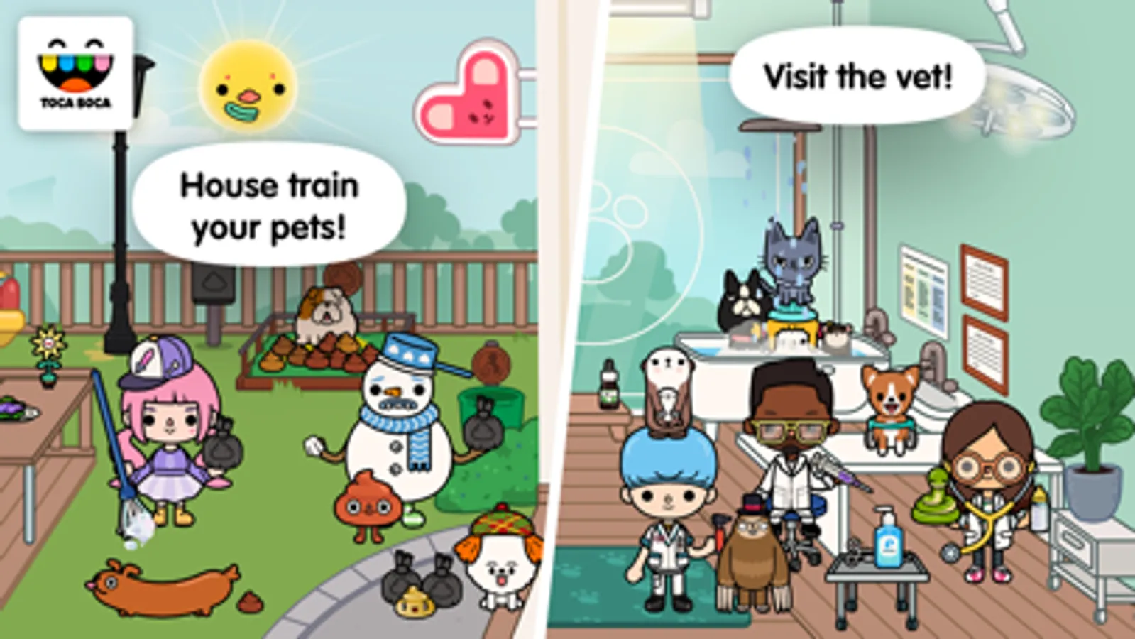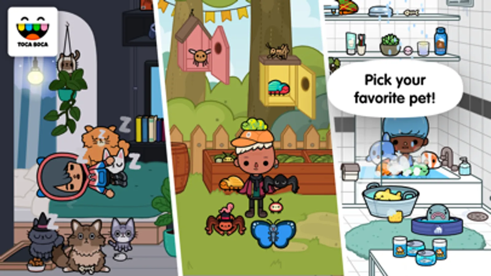 Welcome to Toca Life: Pets, where you and your animal friends run the show! What’s your favorite pet like? Furry and fast? Wet and wiggly? A little bit creepy? With more than 120 animals, Toca Life: Pets has every kind of pet you can imagine.