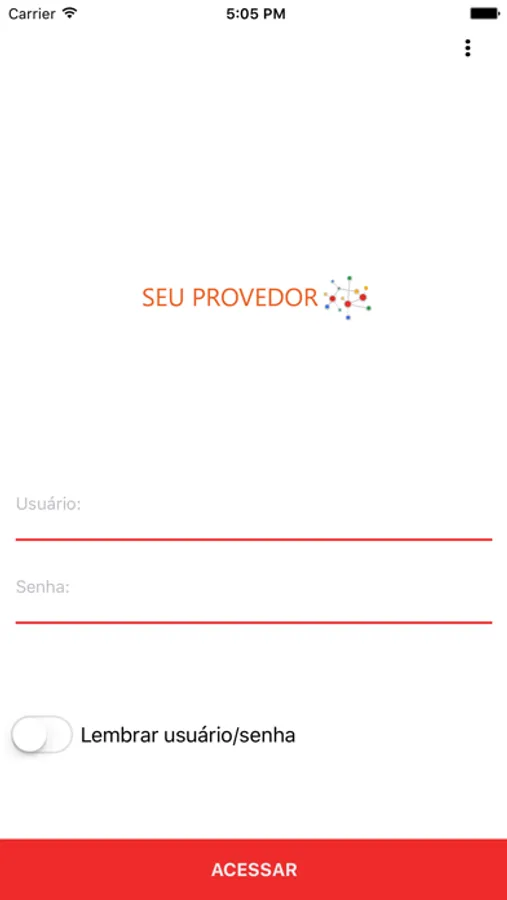 Para acessar, basta digitar o nome do seu Provedor e, depois disso, utilizar as credenciais para fazer login no app.