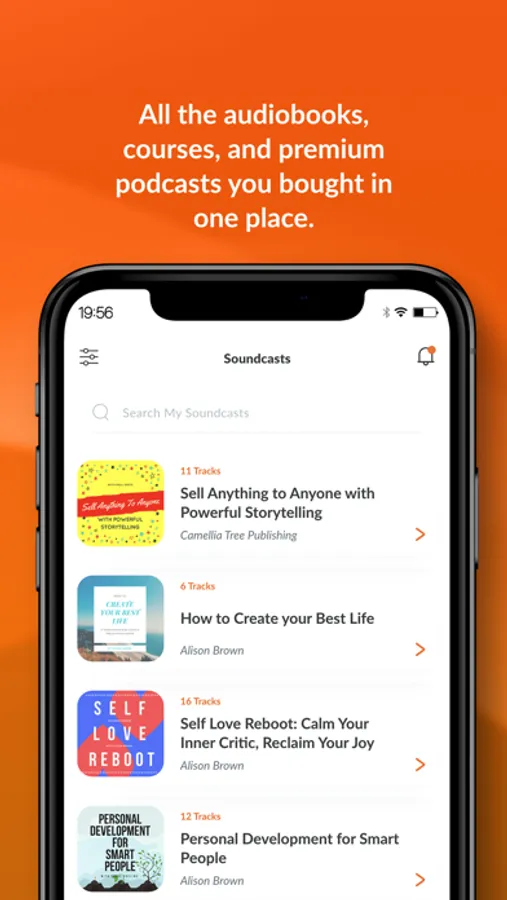 * Listen to all the audiobooks, audio courses, albums, and podcasts you purchased from Soundwise-powered publishers.