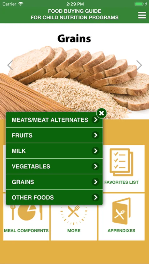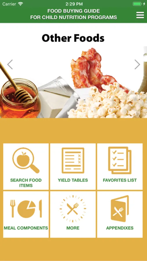 The Food Buying Guide for Child Nutrition Programs (FBG) Mobile App assists Child Nutrition Program (CNP) operators, food manufacturers, and other stakeholders with: