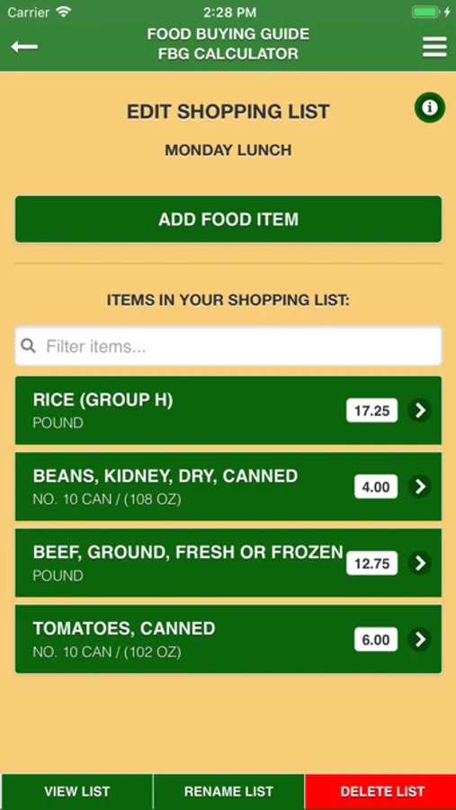 - Create shopping list to assist in ordering and purchasing food.