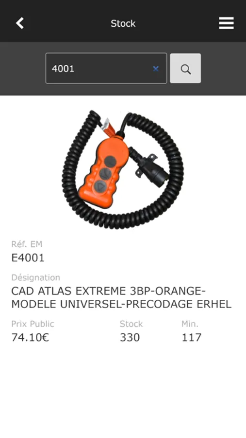 - Consulter l'état des stocks sur une référence EM ou référence constructeur donnée,