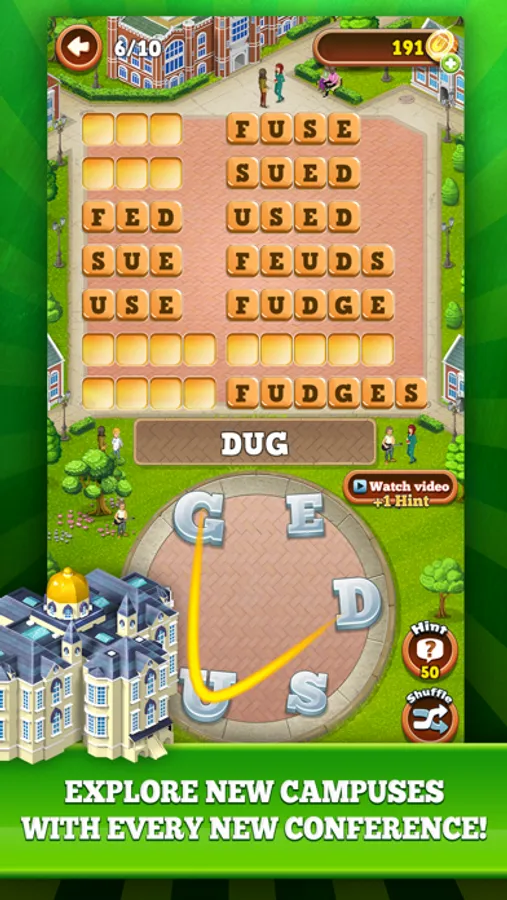Word U is a fun, new, letter twisting, word puzzler. See how many words you can build from your pool of letters and move through the ranks of prestigious colleges. You will enjoy earning a graduation cap from hundreds of universities and as you get smarter, the words become more complex.