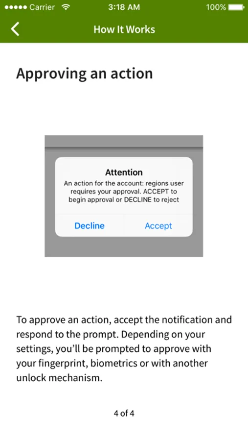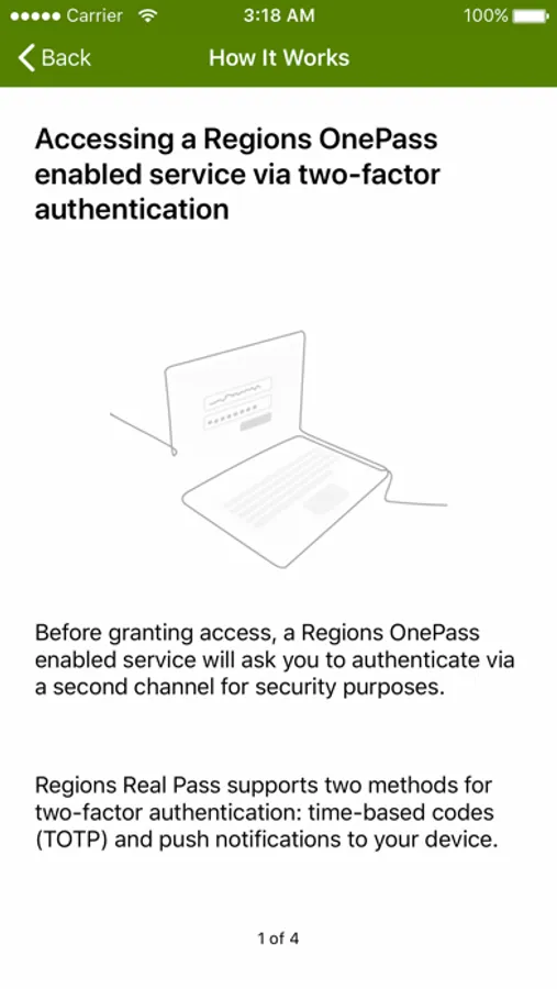 Important Note: You must have assigned Regions OnePass® credentials and a compatible device to use the service. Registration is required to use the Regions Authenticator app. Service terms and conditions apply.