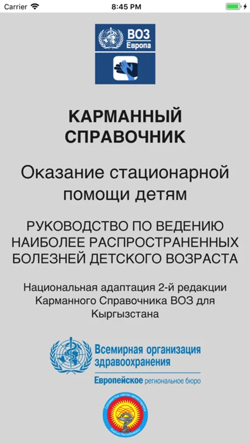 Электронная версия Карманного справочника содержит современные клинические рекомендации, основанные на фактических данных, для стационарного ведения детей.