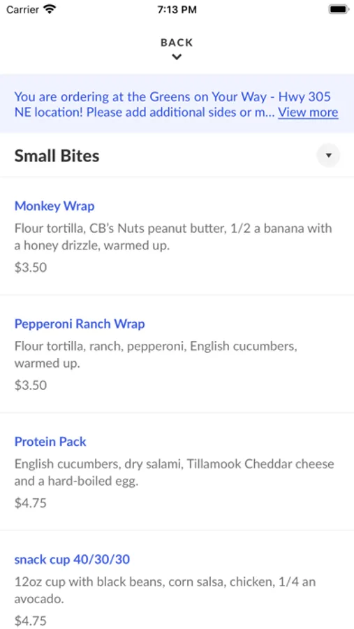 With the Greens On Your Way mobile app, ordering food has never been easier. Whether you're looking for a quick snack or a full meal, we've got you covered. Just browse our easy-to-use menu, customize it how you'd like, place your order using our secure payment system, and sit back! A push notification will alert you when your order will be ready.