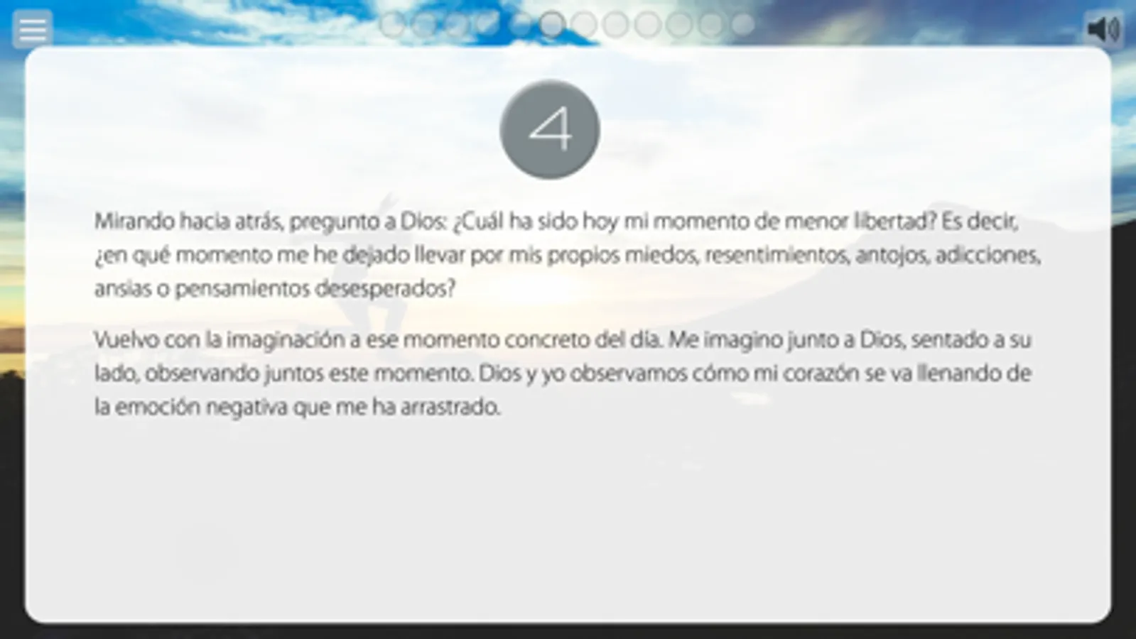 Hay una sencilla rutina de cinco pasos para el Examen diario, por los que esta aplicación te guía: