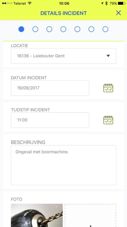Met de Safety app van MBG kan iemand op de werf een ongeval of incident melden. Naast het ingeven en omschrijvingen kan hij of zij ook foto's nemen en koppelen aan het incident of ongeval.