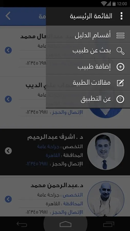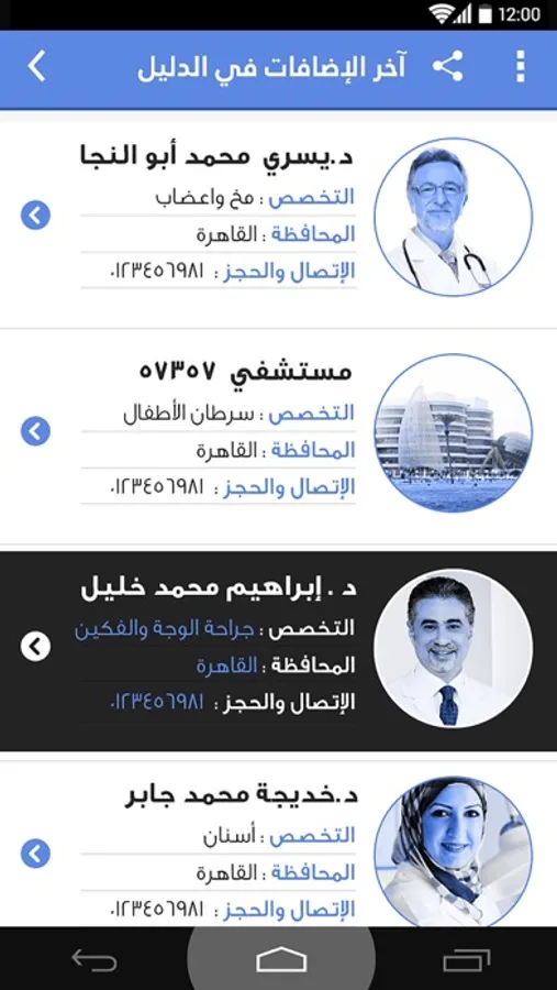 - في حالة انك طبيب يمكنك اضافة معلوماتك و سيتم اضافتها الى الدليل فور التأكد منها