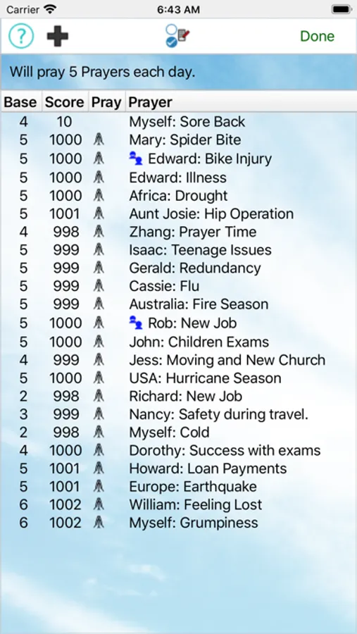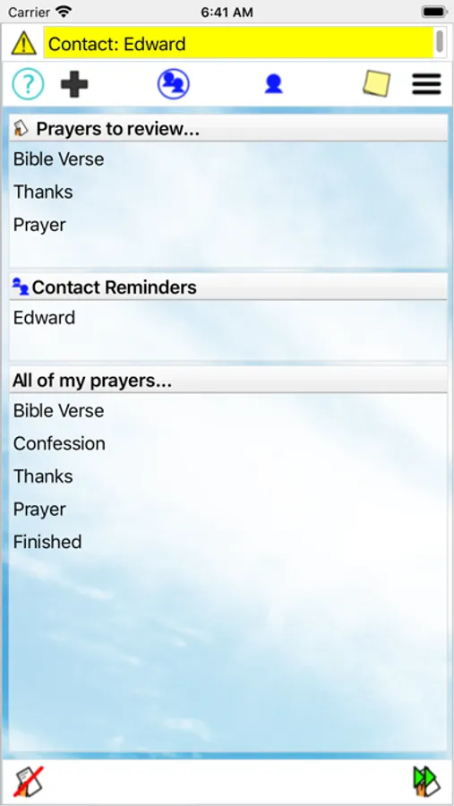 - Optionally have the app prompt you to quickly review all of your day's prayers before praying them, to see if anything has changed.