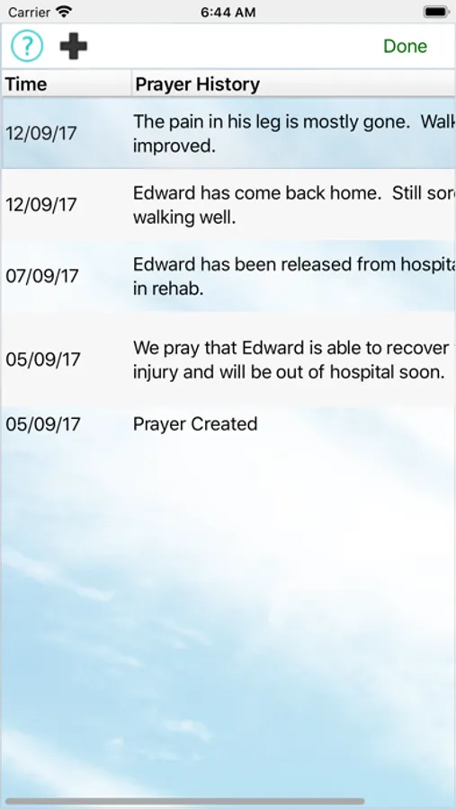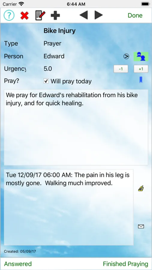- Add updates to the prayer as you find out more information, and view the whole history of a prayer.