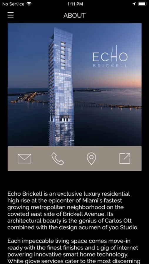The Echo Brickell App enables residents to manage their living experience from their mobile device. Key features include: