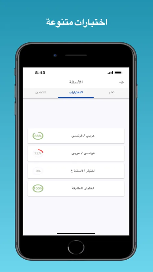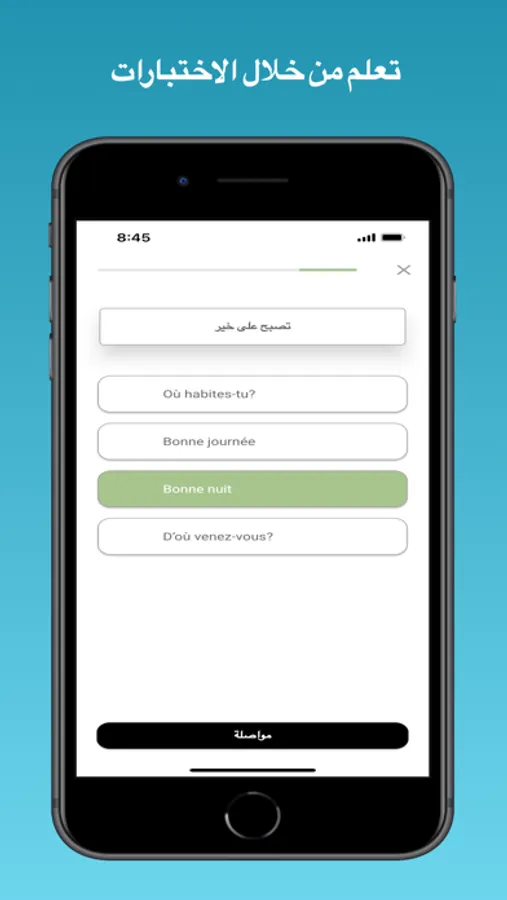- اختبارات قواعد اللغة الفرنسية والمفردات والمحادثات اليومية. ستتعلم بشكل تدريجي وتتقدم بثقة في مستوياتك المختلفة.