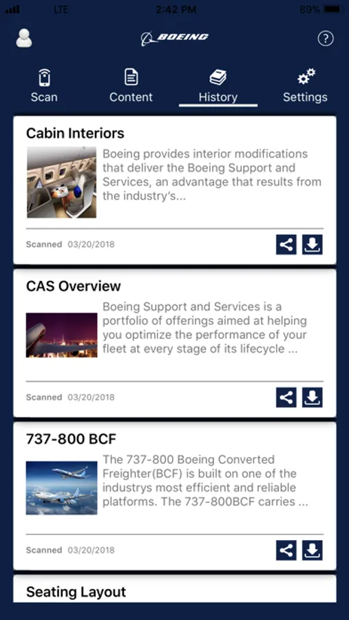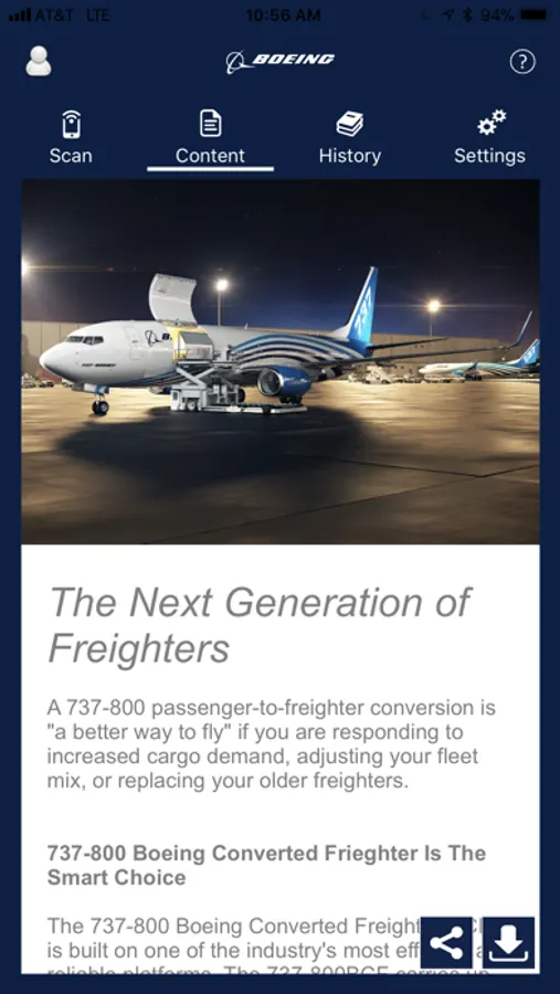 Boeing Experience gives users the ability to access information about Boeing products and services through Quick Response code scanning (QR).