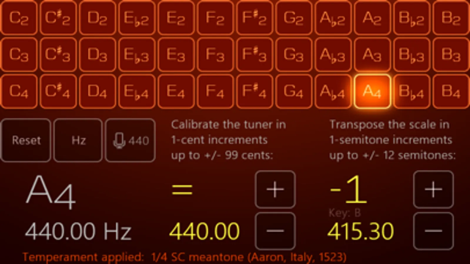 • customizable stretched tunings