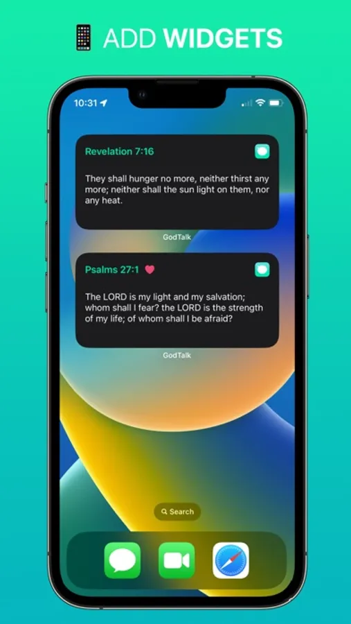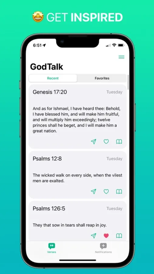 Get Bible verses in notifications, automatically, throughout the day. A Bible verse can serve as an inspiration to read the Bible more, help you to become more confident, or motivation to resist temptation.