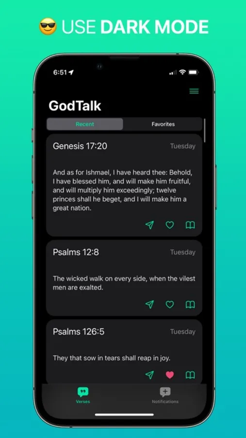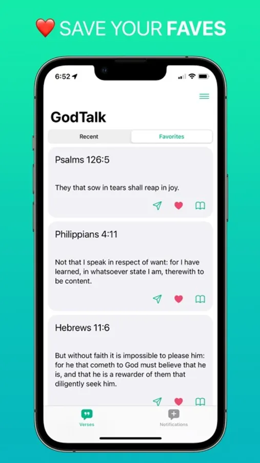 - Save verses to your Favorites collection to reflect, memorize, or dive deeper into the Word
