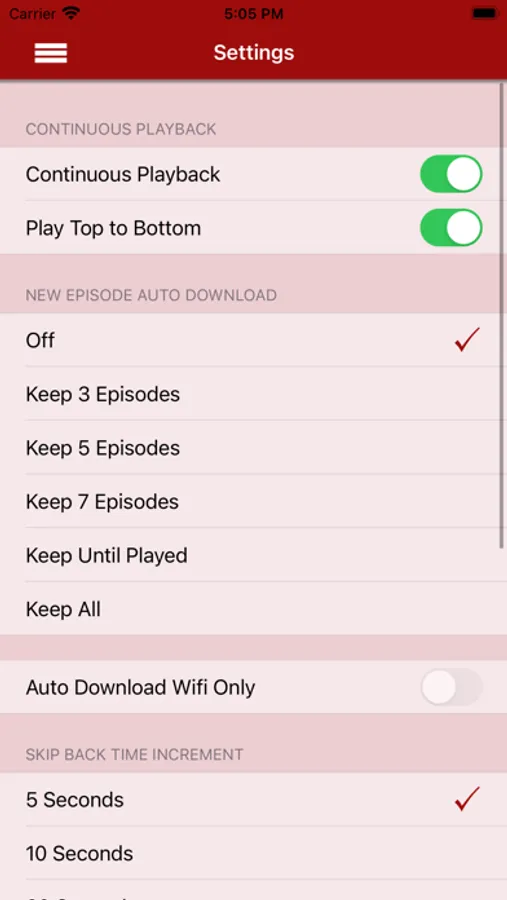 * Playback controls like continuous play, Speed 1x, Repeat Off, and Sleep Timer