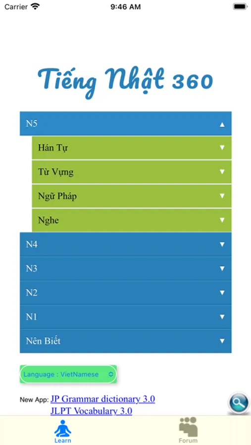 JLPT is a helpful tool to learn the Japanese language and prepare for the JLPT exam by studying Japanese vocabulary,grammar,kanji. It contains a dictionary of over 200,000 words required for the exam across all 5 levels. The dictionary can be searched on using kanji, kana (hiragana/katakana), or romaji.