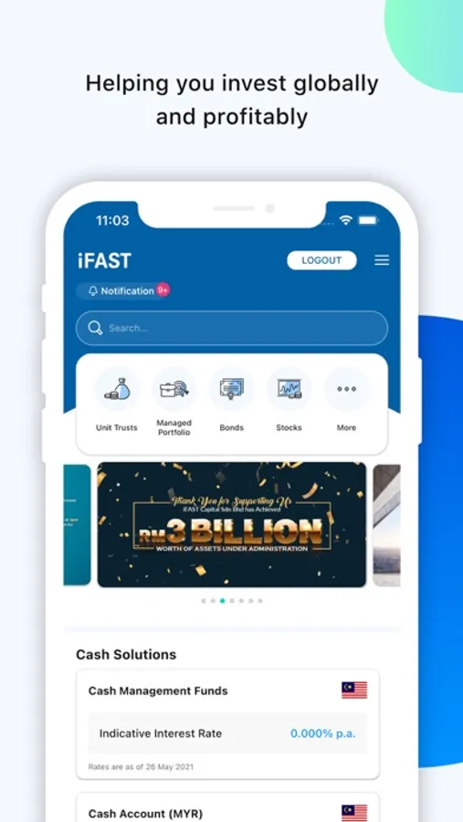 This is a mobile application that designated for CUTA companies who partnering with iFAST platform in Malaysia, exclusively designed to assist the financial planners and clients in streamline the investment processes as well as to reduce the unwanted transactions paraphernalia. By digitalizing the documents to mobile app, the financial planners will be able to provide their clients a seamless, efficient and better investment advisory experiences with this iFAST mobile app.