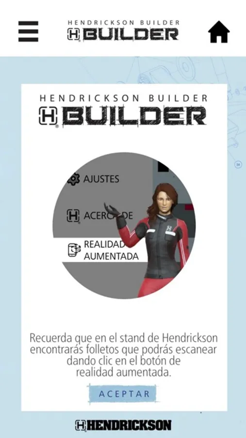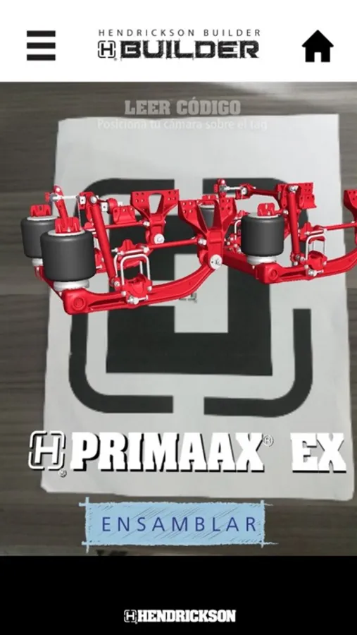 Selecciona la opción Realidad Aumentada del menú de Hendrickson Builder. Con la aplicación escanea la parte trasera de las tarjetas para ver los modelos 3D en Realidad Aumentada de Hendrickson.