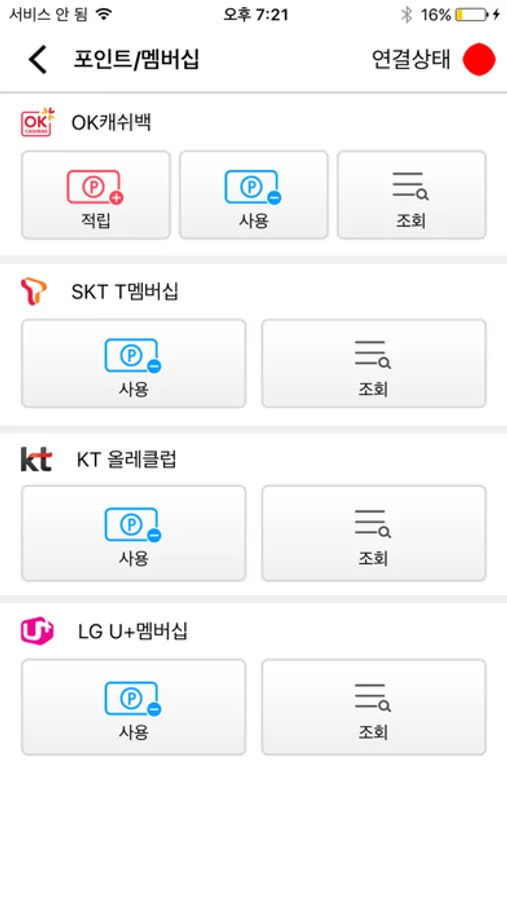 - 포인트/멤버십 사용 및 적립 (OK캐쉬백, 통신사 멤버십)