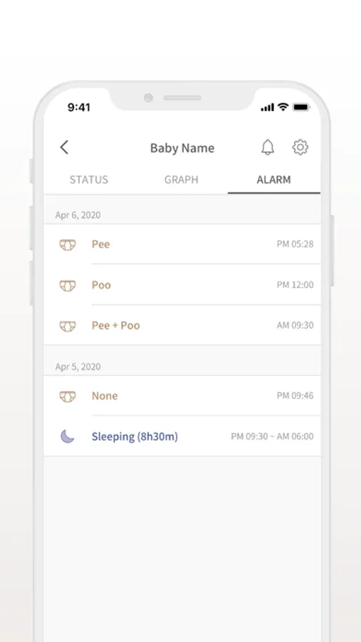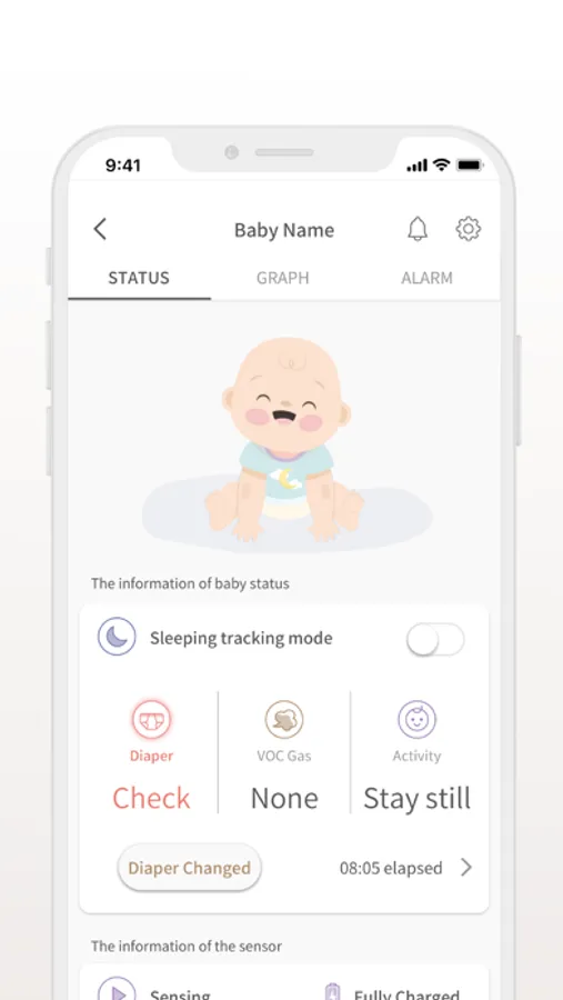 With this application, the user can get real-time alarms about urine and feces in a diaper.