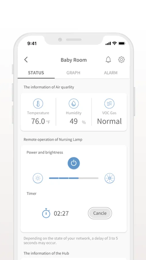Also the user can get the information of temperature, humidity and VOCs gas from air quality monitor hub around a baby.