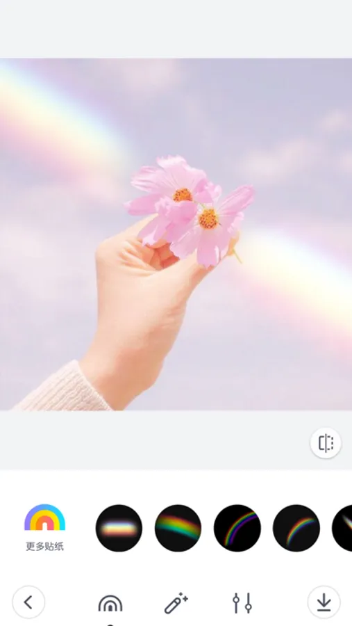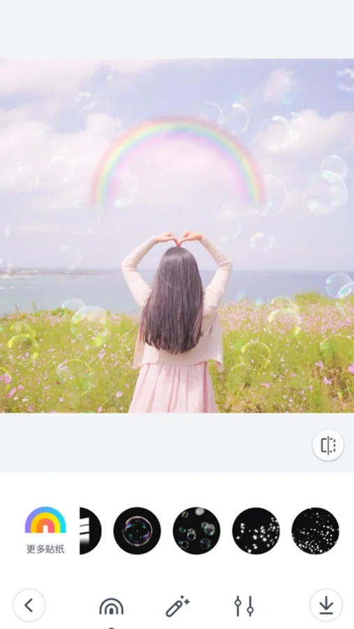 In addition to the colorful series of beautiful filters, it also added a light and shadow overlay effect sticker
