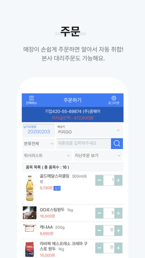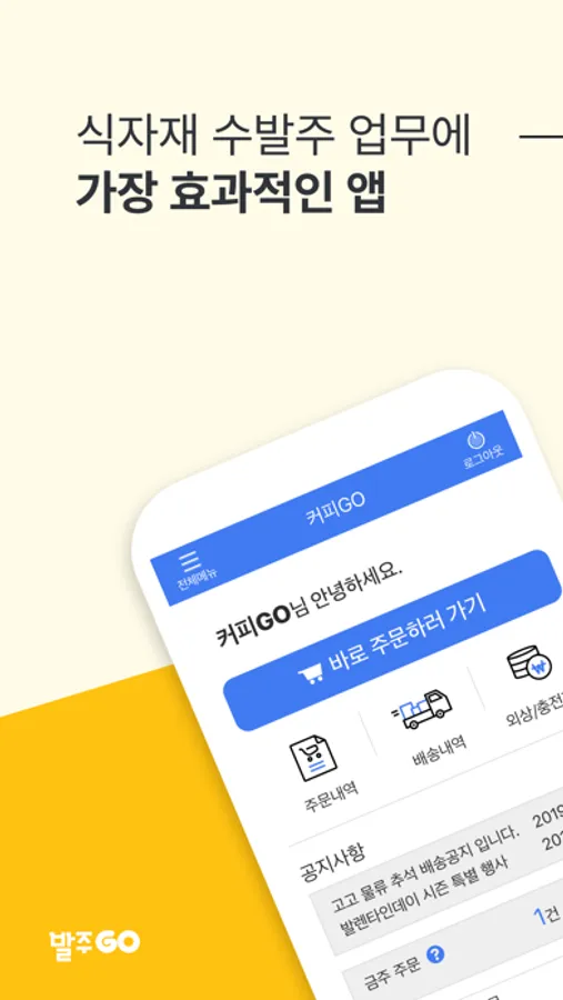 - 매장 점주님! 직관적인 디자인으로 간단히 발주하고 한 눈에 확인해보세요.