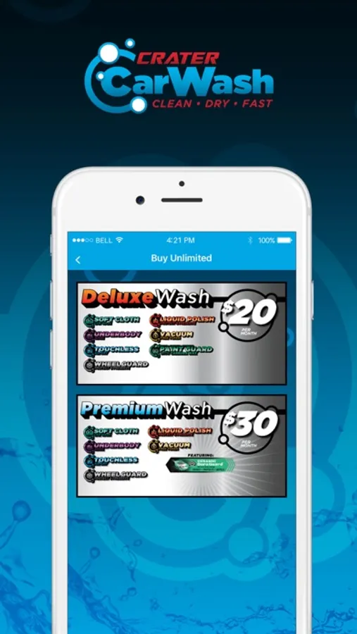 The app allows users to manage their unlimited accounts, schedule a detail, purchase washes online, and send a wash to a friend. The app is easy to use and free to install. You will need to provide an email address to register.