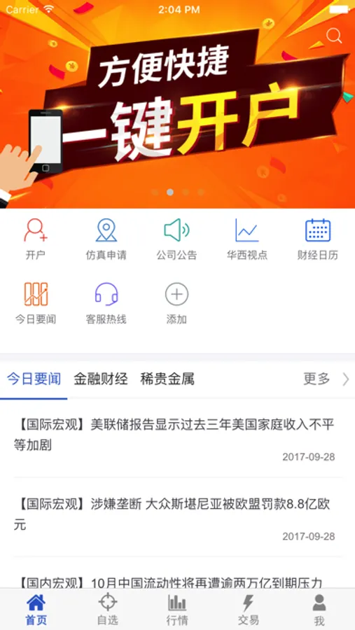 华西期货有限责任公司定制开发,内置监控中心网上开户系统,是一个集成行情、交易、网上开户、金融行情资讯等功能为一体的移动终端应用系统。