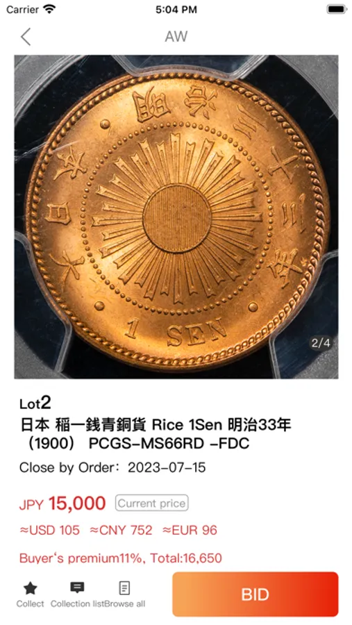 Auction World is a Japanese auctioneer, mainly auction for rare coins and banknotes. This app is used to
