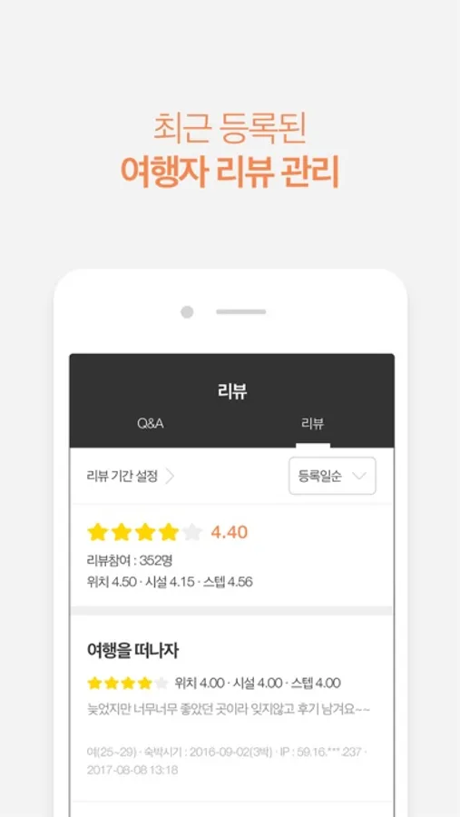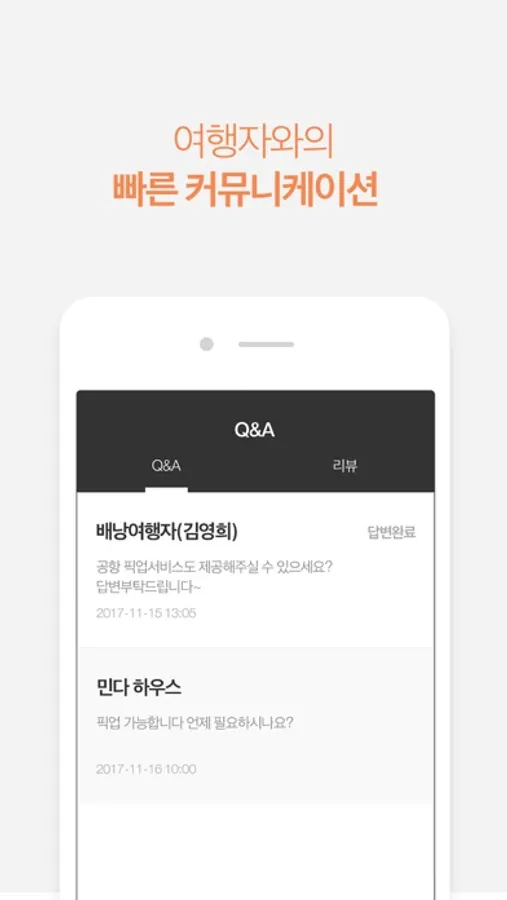 - 여행자의 최신 리뷰 등록 시 앱에서 쉽게 커뮤니케이션 할 수 있습니다.