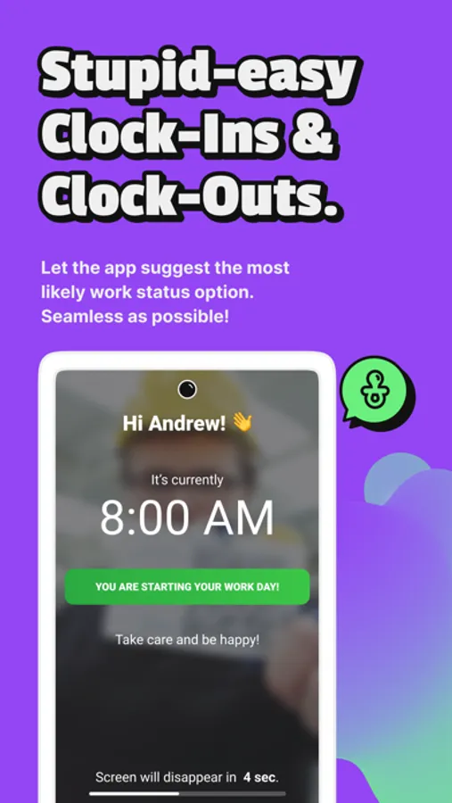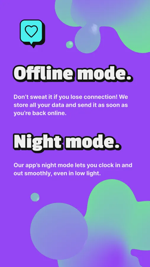 The app even has a night mode that lets you clock in and out smoothly, even in low light.