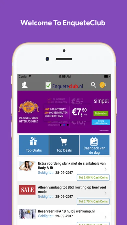 Meld je gratis aan op EnqueteClub.nl. Er wordt automatisch een persoonlijk account voor je aangemaakt en je hebt direct toegang tot alle webshops en de beste online deals!