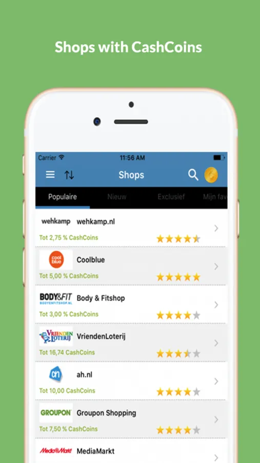 Zoek in het uitgebreide aanbod van aangesloten webshops en zie direct hoeveel CashCoins jij van EnqueteClub.nl krijgt. Heb je jouw shop gevonden? Klik op de button en shop met CashCoins!