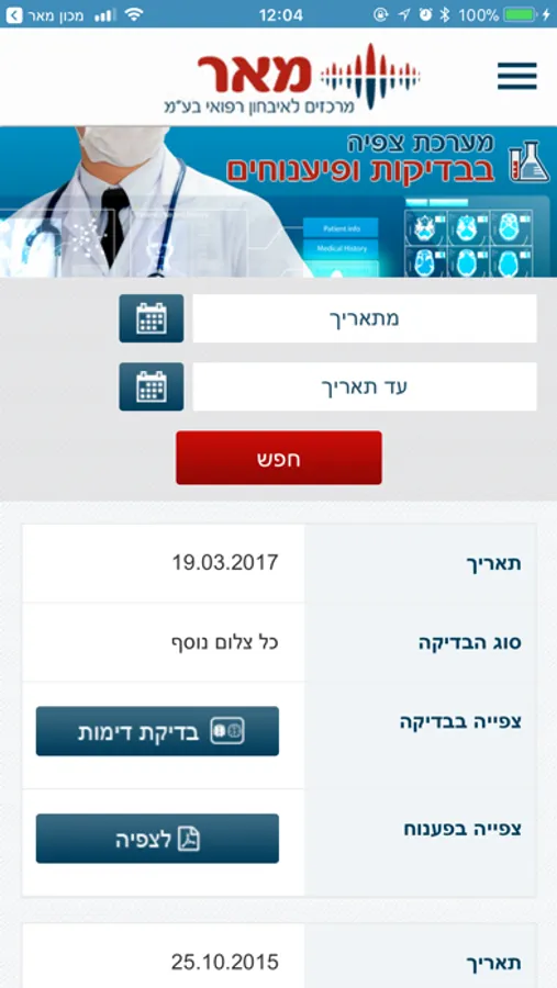 אפשרות לצפייה בבדיקות שביצעת במכוני מ.א.ר,