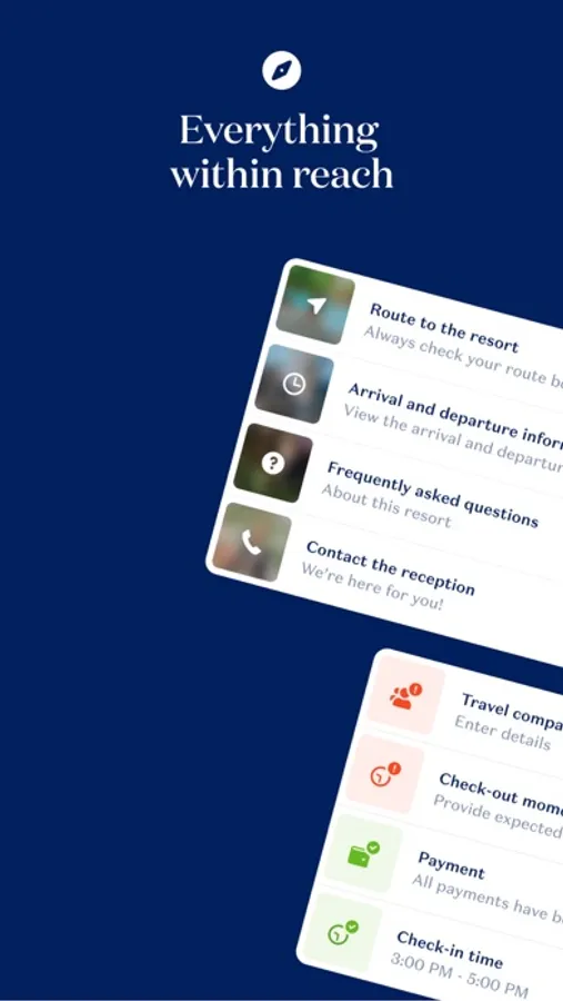 Our new start screen serves as the starting point for both the preparation for your stay and the actual stay. All important information about your resort, from all facilities to an overview of your accommodations, can be found here. It is impossible to get lost in the resort with our map. For all inquiries, please contact our resort reception.