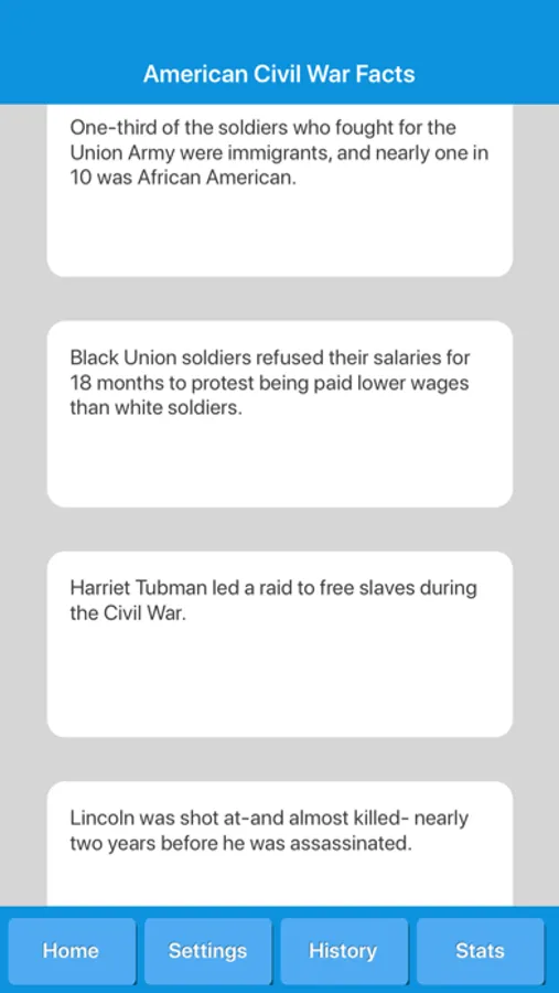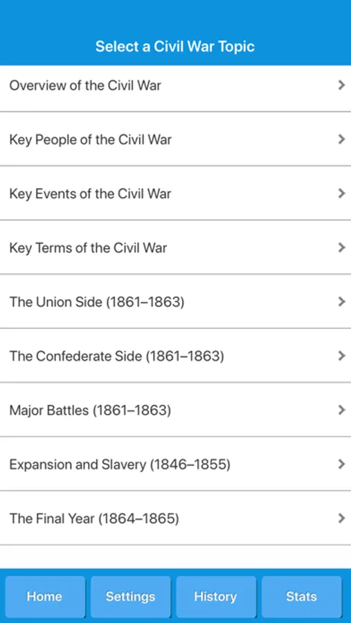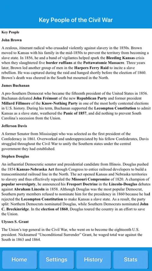 Test and improve your American Civil War history knowledge answering the questions with our quiz application. Our educational app also helpful for high school and graduate school students.